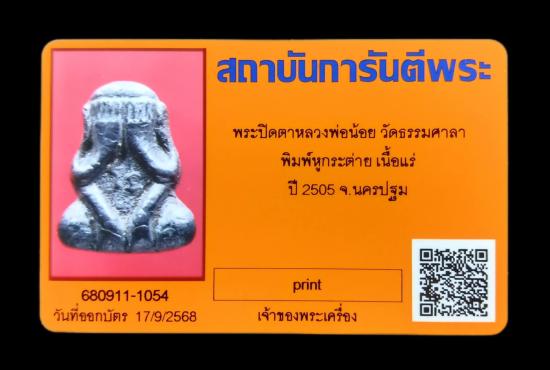 พระปิดตาเนื้อแร่ หลวงพ่อน้อย วัดธรรมศาลา รุ่นแรก พิมพ์หูกระต่าย นครปฐมครับ (พร้อมบัตรรับรอง) ครับ