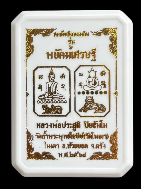 สมเด็จเสือนอนกิน รุ่น "พยัคฆ์เศรษฐี" หลวงพ่อประสูติ ปิยธัมโม วัดถ้ำพระพุทธโกษีย์(ในเตา)จ.ตรัง เนื้อดำใบลาน พิเศษ No.178 พร้อมกล่องเดิมครับ |