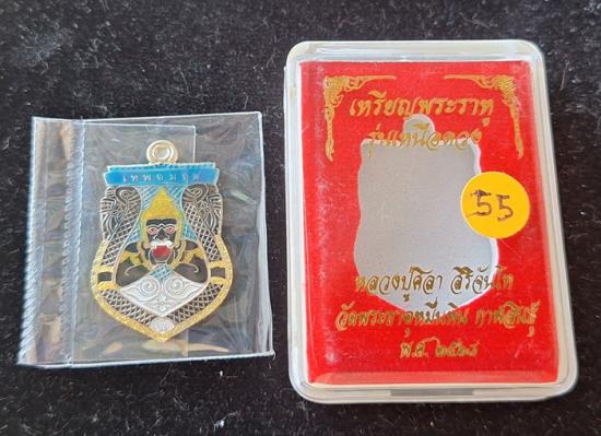 เหรียญพระราหูอมจันทร์ หลวงปู่มหาศิลา เมตตาอธิษฐานจิต รุ่นเหนือดวง เนื้ออัลปาก้าลงยา เลขเบิ้ล No.55 |