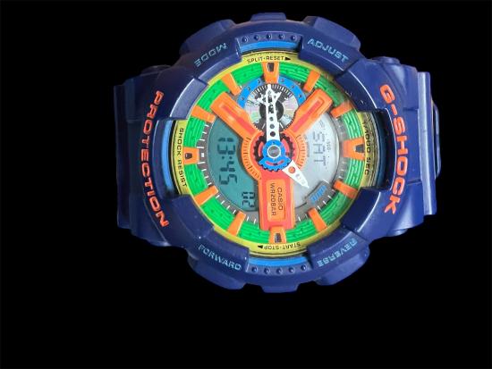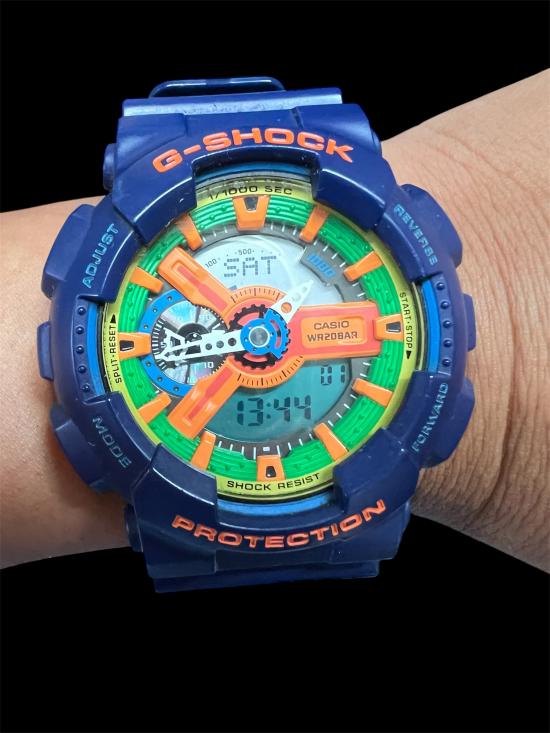 วัดใจเคาะเดียว/////GA-110FC (เลโก้น้ำเงิน)🎖 (ของสะสม สภาพสวยมาก) ⭐รายละเอียด: กระจกสวยใส กรอบสายใหม่สวย ฝาหลังสวย ⭐ระบบ: ปกติ เสียงดัง ไฟสว่าง (auto like เด่งดี) |