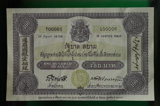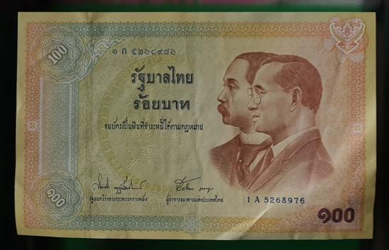 - รูปแบบธนบัตรแบบ 1 ชนิดราครา 100 บาท รุ่นแรกประกาศออกใช้เมื่อวันที่ 7 กันยายน พุทธศักราช 2545