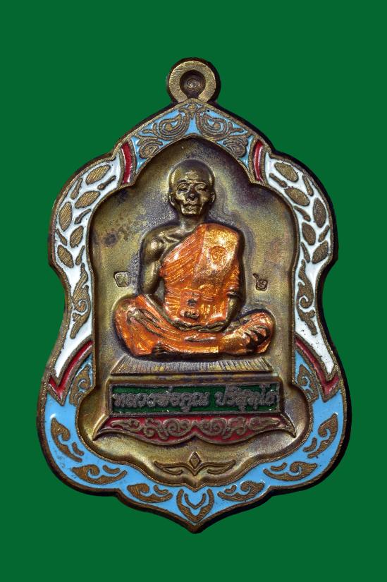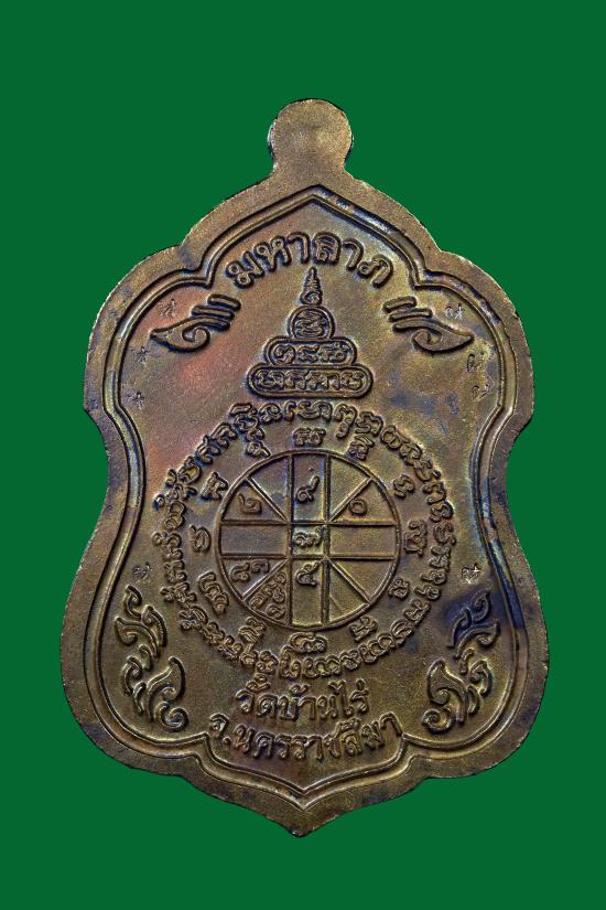 เหรียญหลวงพ่อคูณ พิมพ์โล่ห์ใหญ่ รุ่นพุทธคุณสยามมหาลาภ ออกวัดใหม่อัมพวัน จ.นครราชสีมา ปี 2554 เนื้อนวะโลหะลงยา แยกจากชุดทองคำ หมายเลข ๒ |