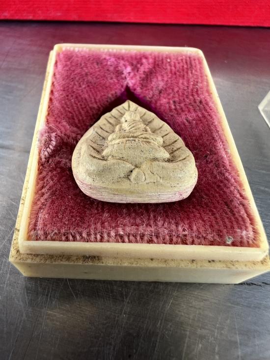 หลวงปู่แหวน สุจิณฺโณ วัดหลวงปู่แหวน วัดดอยแม่ปั๋ง พระผงใบโพธิ์พุทธคยา พร้อมกล่องเคาะเดียว |