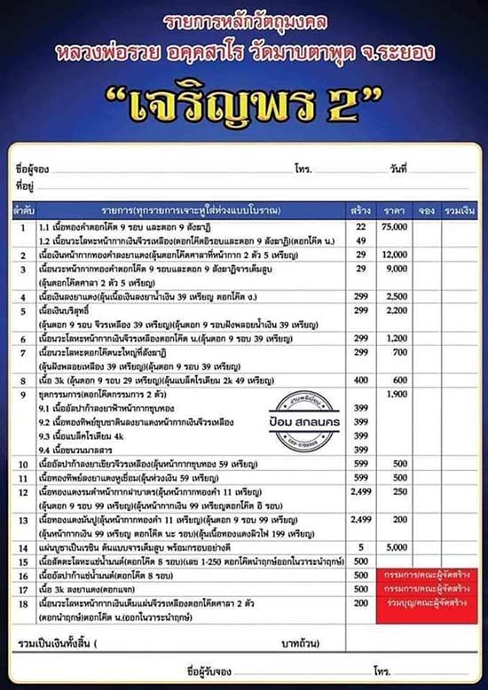 | ชื่อพระเครื่อง | 429....วัดใจ....(เปิดต่ำจอง สร้าง 299 ราคาจอง 1200 รายการที่ 6 ) เหรียญเจริญพร 2 หลวงพ่อรวย วัดมาบตาพุด ระยอง (ป้อม สกลนคร จัดสร้าง) เนื้อ นวะหน้ากากเงิน ลงยา ...... ปี 2565 สวยๆ ซิลเดิม กล่องเดิม |