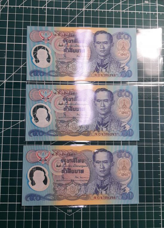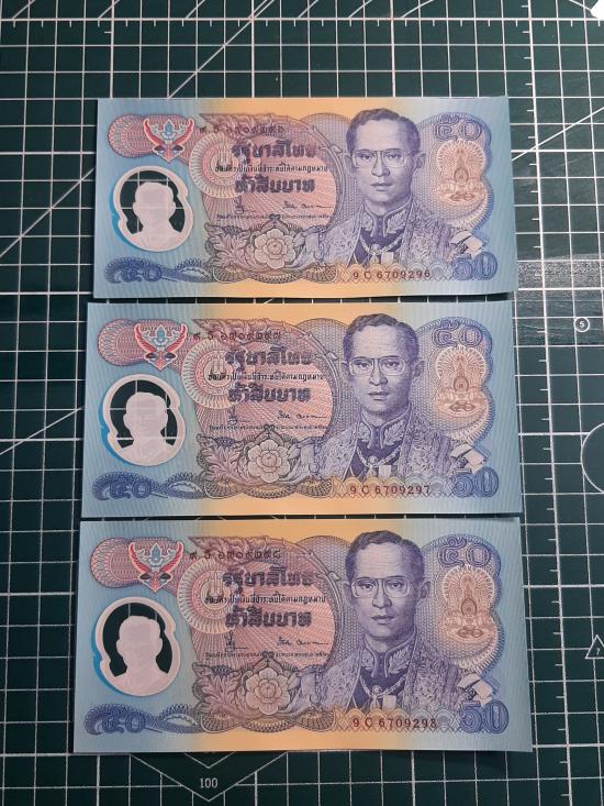 ## ธนบัตร 50 บาท ## กาญจนา ## เรียงเลข 3 ฉบับ ## ไม่ผ่านการใช้ หมายเลข 6709296-98 |