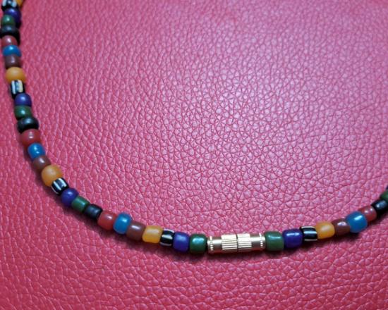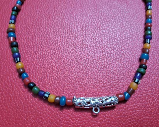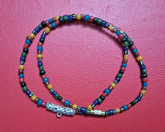 สร้อยคอลูกปัดทราวดี ลูกปัดโบราณสวยๆ ความยาว 24 นิ้ว สวมหัวได้หรือหมุนเกลียวทองเหลืองถอดออกก็ได้ สามารถห้อยพระได้ 1 องค์ (กท.03) |