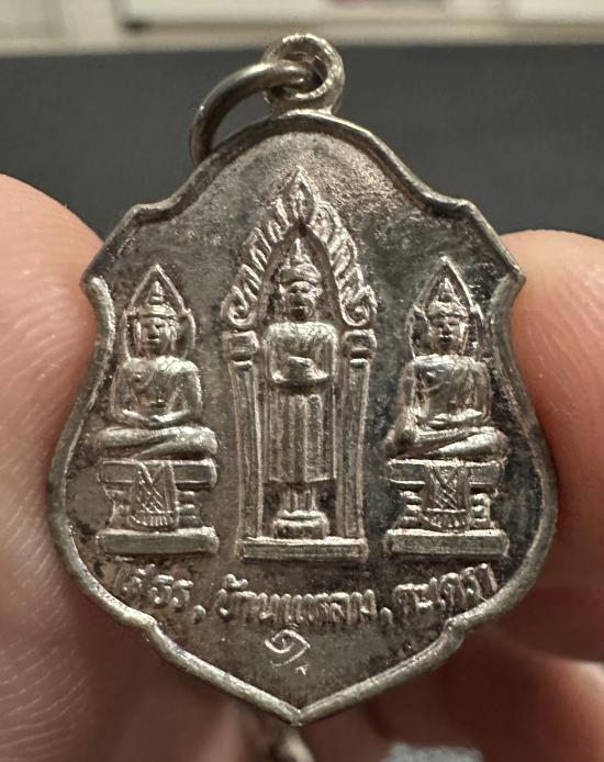 เหรียญ สามพี่น้อง หลวงพ่อโสธร หลวงพ่อวัดบ้านแหลม หลวงพ่อเขาตะเครา วัดประทุมคณาวาส จ.สมุทรสงคราม ปี2535 เนื้อเงิน |