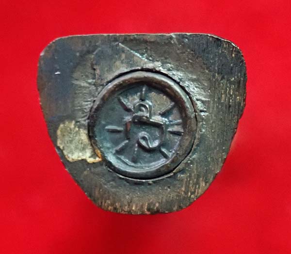 รูปหล่อลอยองค์บรรจุกริ่ง (ฝาอุดกริ่งใต้ฐาน ตัว"นะ" รัศมี) ลป.ทวด วัดช้างให้ ปี 2526 (อ.นอง วัดทรายขาว ปลุกเสก)