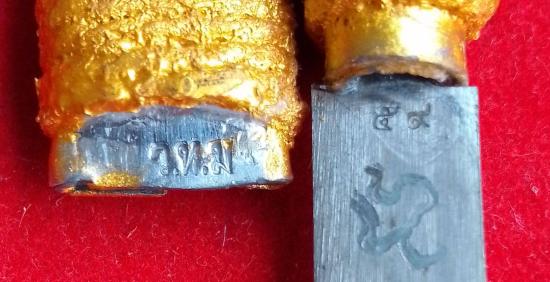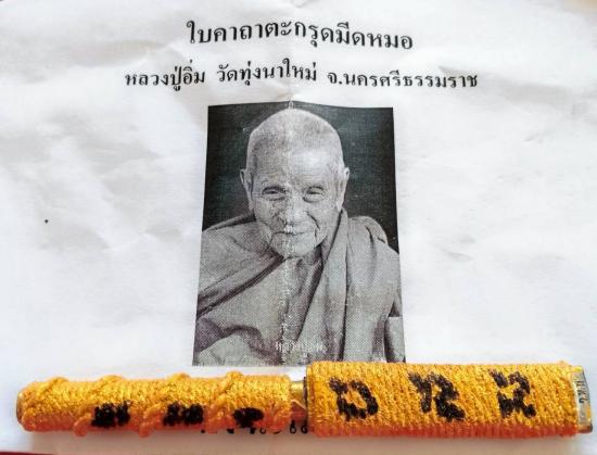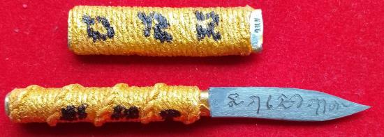ตะกรุดมีดหมอ หลวงปู่อิ่ม วัดทุ่งนาใหม่ จังหวัดนครศรีธรรมราช ตอกโค๊ต ว.ท.ม. และ หมายเลข 59 ขนาดความยาวคมมีด 1.5 นิ้ว ยาวรวมทั้งหมด 4 นิ้ว |