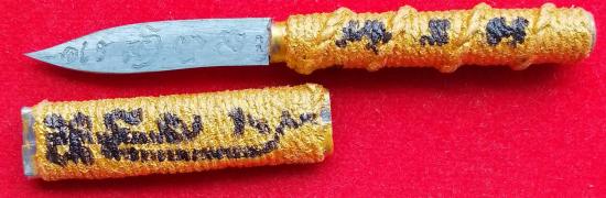 เคาะเดียวแดง.....ตะกรุดมีดหมอ หลวงปู่อิ่ม วัดทุ่งนาใหม่ จังหวัดนครศรีธรรมราช ตอกโค๊ต ว.ท.ม. และ หมายเลข 59 ขนาดความยาวคมมีด 1.5 นิ้ว ยาวรวมทั้งหมด 4 นิ้ว |