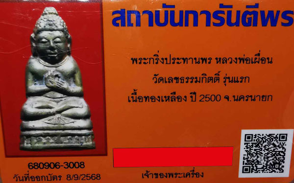 พระกริ่งประธานพร หลวงพ่อเผื่อน วัดเลขธรรมกิตติ์ รุ่นแรก เนื้อทองเหลือง กริ่งดัง ปี2500 จ.นครนายก(ตอกโค้ด) + บัตรG-pra สภาพเดิมค่ะ |