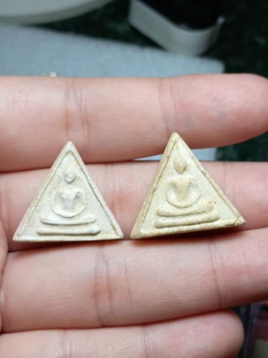 เคาะเดียว..ทุกกระดาน..พระเนื้อผงพิมพ์สามเหลี่ยม ไม่ทราบที่ 2องค์..