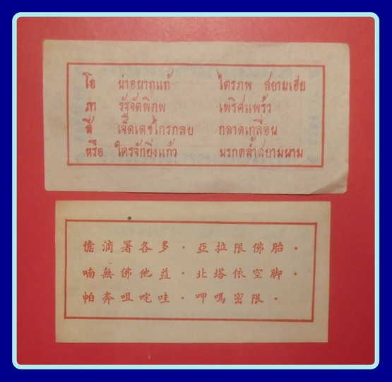 เก่าถึงยุค-นิยม 2แบบ หลังภาษาจีน+ภาษาไทย 2แผ่น-150-กระดาษยันต์กันภัย หลวงพ่อโอภาสี ด้านหลังภาษาจีน(หายาก ขนาดประมาณ*9+5 ซม.*) |