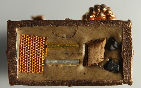รูปหล่อลอยองค์พระพรหมสี่หน้า วัดห้วยเงาะ รุ่นแรก ใต้ฐานบรรจุด้วยมวลสารเก่า เป็นผงว่านมงคลเก่าเก็บ ตั้งแต่สมัยอดีตเจ้าอาวาสองค์ก่อนนำมาใส่ไว้ในโอ่งตั้งอยู่ในโบสถ์วัดห้วยเงาะ ผ่านพิธีพุทธาภิเษกมาแล้วมากมายจนนับไม่ถ้วน เส้นเกศา จีวร ตะกรุดเงินและทองคำ พลอยทับทิม ไม้ตะเคียนลอดโบสถ์อายุร้อยกว่าปีของวัดม่วงหมังผ่านพิธีพุทธาภิเษกมานับไม่ถ้วนเช่นกัน