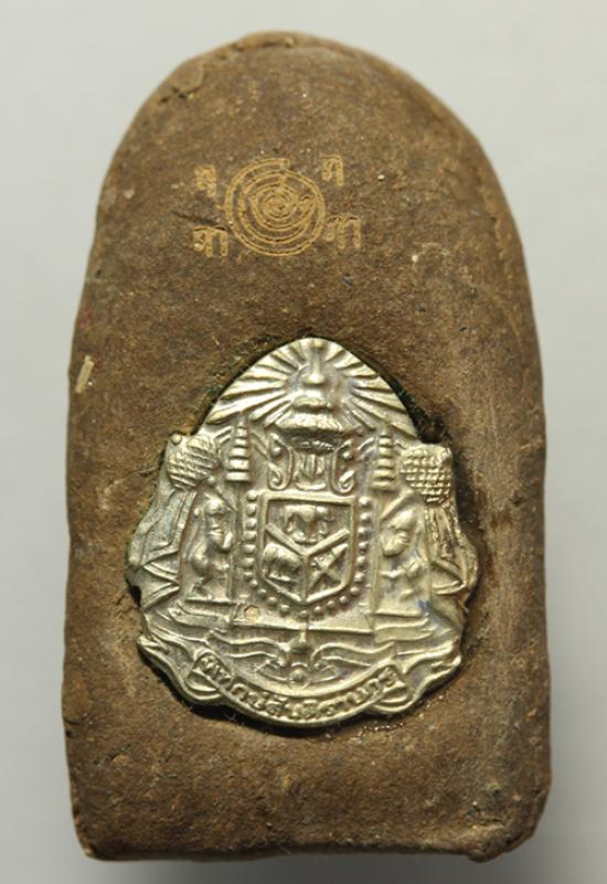 หลวงพ่อทวดเนื้อว่านพิมพ์พระรอด หลัง ตราแผ่นดิน รุ่นพิทักษ์แผ่นดิน หลวงพ่อทองวัด สำเภาเชย ปัตตานี ปี 2551 พร้อมกล่องเดิม จัดสร้างโดยสมาคมตำรวจ |