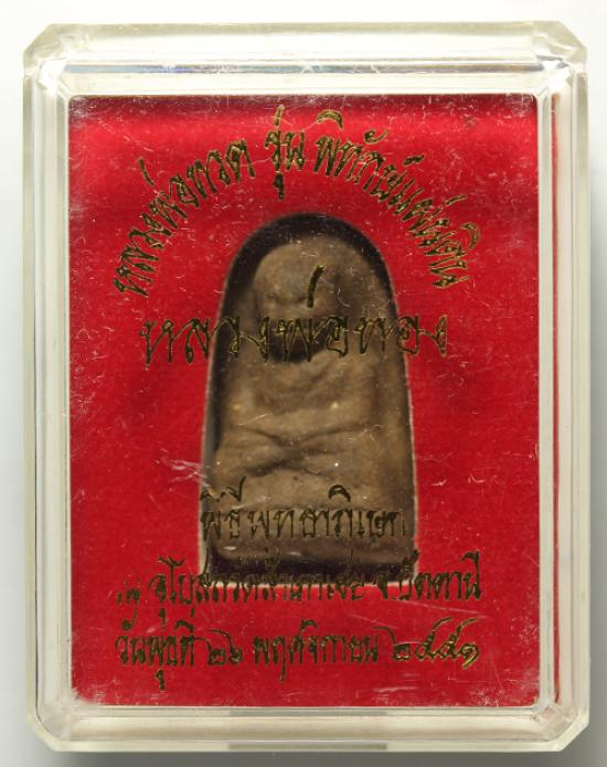 หลวงพ่อทวดเนื้อว่านหลัง ตราแผ่นดิน รุ่นพิทักษ์แผ่นดิน หลวงพ่อทองวัด สำเภาเชย ปัตตานี ปี 2551 พร้อมกล่องเดิม จัดสร้างโดยสมาคมตำรวจ