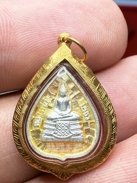 เหรียญหลวงพ่อโสธรหลังตราโล่เขน รุ่นตำรวจ ๘ ริ้ว จัดสร้างโดยสถานีตำรวจภูธรแสนภูดาษ ฉะเชิงเทรา ปลุกเสกที่วัดโสธรวราราม ปี 2560 เนื้อเงินลงยาสีเหลือง ตอกโค้ด นะ และหมายเลข ๑๐๒๔ เลี่ยมทองไม่ทราบเปอร์เซ็นต์แต่ก็น่าจะอยู่ประมาณ 60-70% |