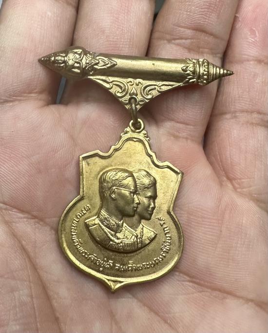 เหรียญในหลวง-พระราชินี ที่ระลึกเสด็จในงานชุมนุมลูกเสือแห่งชา ติครั้งที่9 พ. ศ.2520กะไหล่ทองสวยมาก |