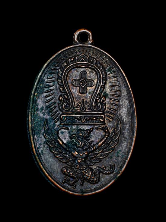 ครุฑแบกเสมา 2498 หลวงพ่อโอภาสี รมดำผิวหิ้ง ถ่ายสตูขึ้นปรอทรุ้งปรอททองตามพื้นเหรียญ บรรยายตามภาพครับ