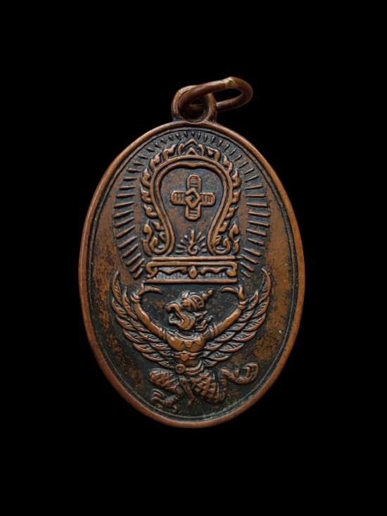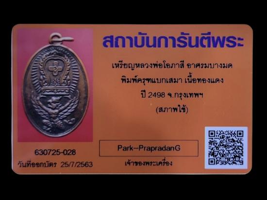 ครุฑแบกเสมา หลวงพ่อโอภาสี 2498 ห่วงเชื่อม คมชัด พร้อมบัตรรับรองจีพระสภาพใช้บรรยายตามภาพ
