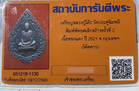 เหรียญหลวงปู่โต็ะ รุ่นพัดยศ พิมพ์เล็ก ปี2521 โค๊ดดาว เนื้อทองแดง สวยๆ |