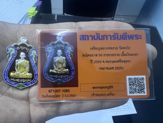 หลวงพ่อรวย วัดตะโก ไตรมาส 59 95 เนื้อเงินยาแดง เลขสวย 2626 จมูกโด่ง สวยแชมป์ ผลพระสภาพสวย