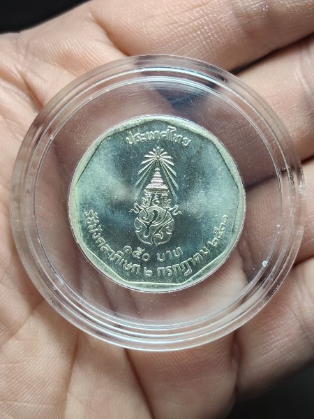 ((วัดใจ))เหรียญกษาปณ์ที่ระลึกพระราชพิธีรัชมังคลาภิเษกในหลวง ร.9 พ.ศ.2531 ราคาหน้าเหรียญ 150 บาท เนื้อเงิน พร้อมตลับเดิมๆ เริ่มเท่าราคาหน้าเหรียญ