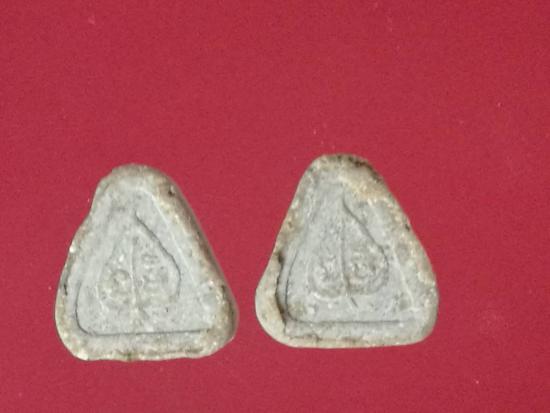 พระปิดตานะมิ หลวงปู่สี วัดถ้ำเขาบุญนาค จ.นครสวรรค์ ปี ๒๕๑๗ หลังใบโพธิ์ยันต์นะมิ เนื้อผงน้ำมันผสมชาญหมาก 2 องค์