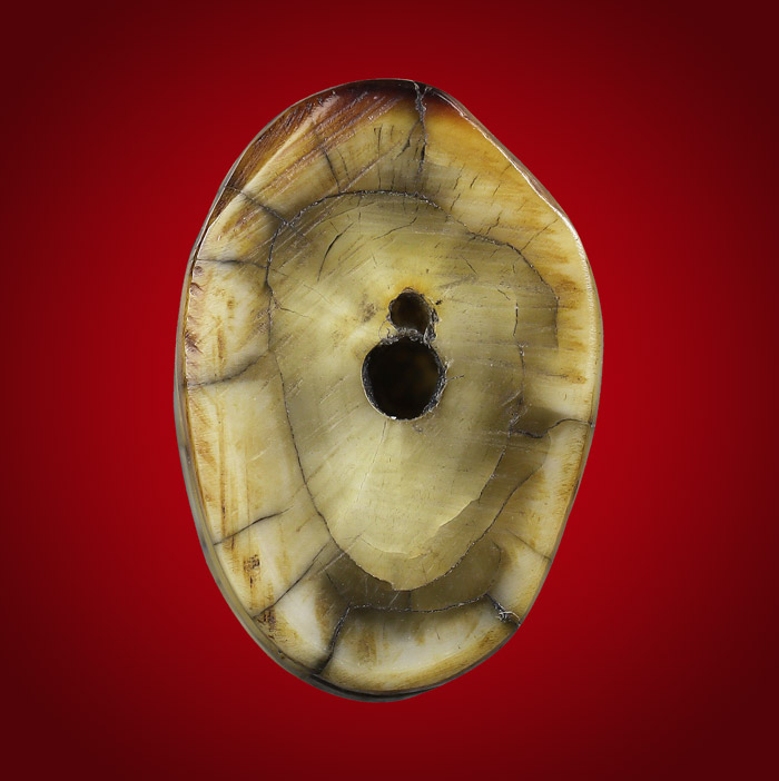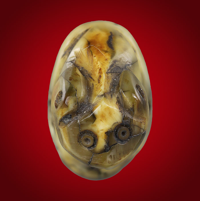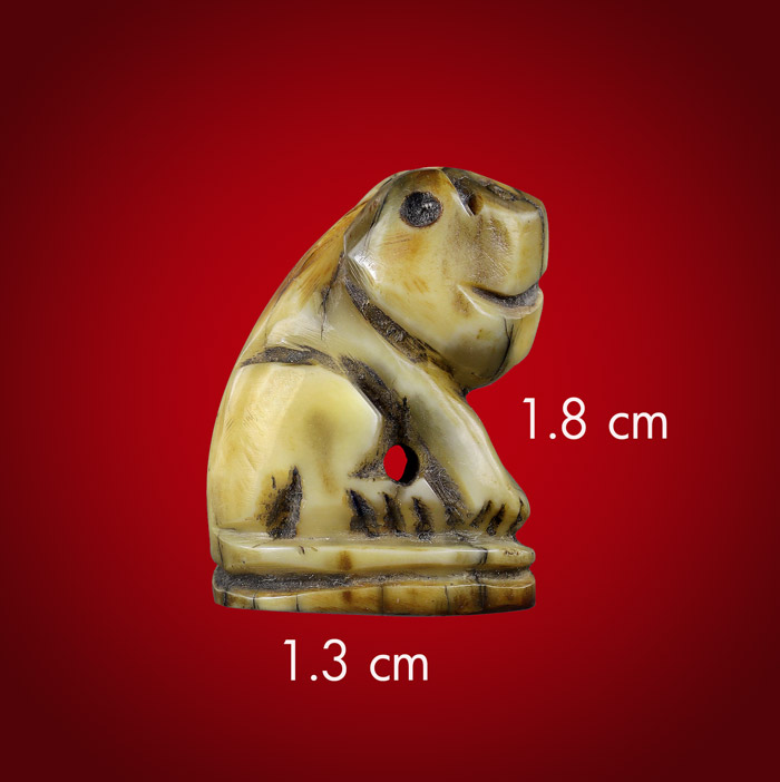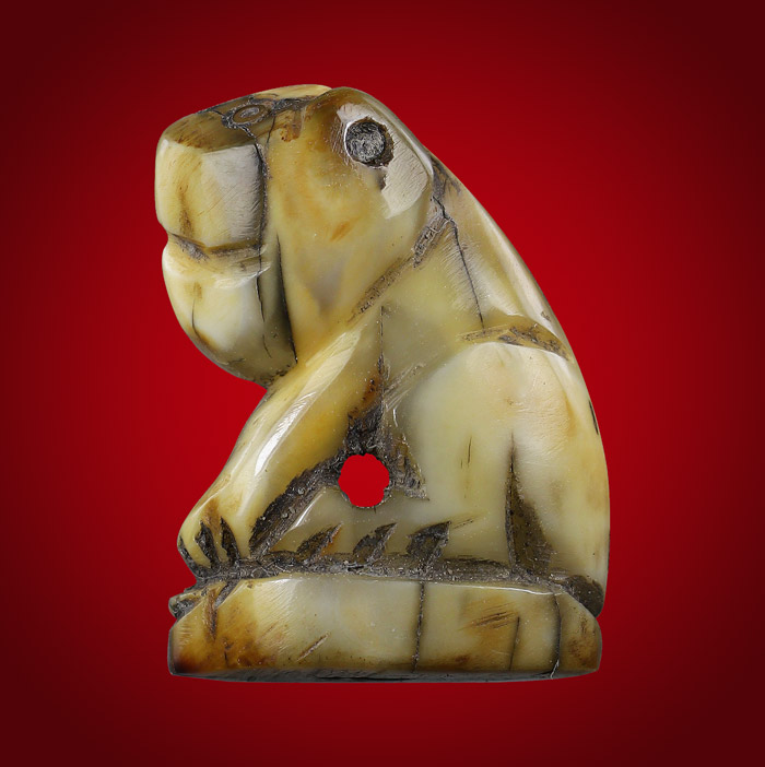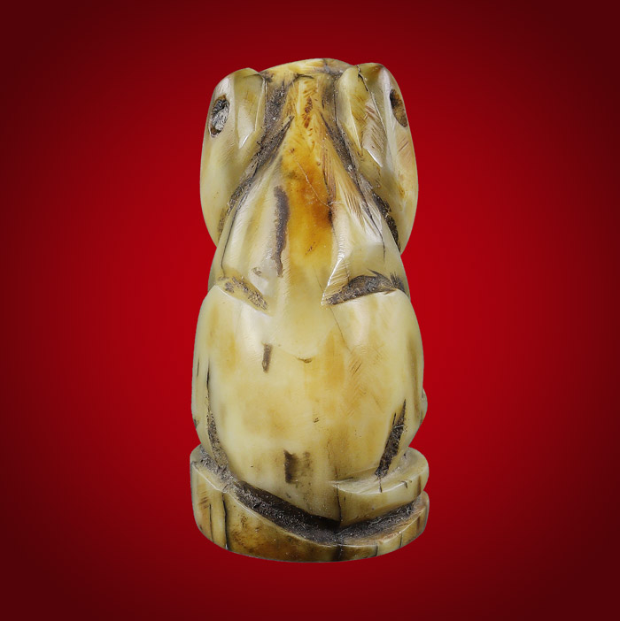 เสือ แกะจากเขี้ยว พิมพ์ปากหุบ(ไม่ทราบที่สร้าง) ขนาดเสือฐาน 1.3cm สูง 1.8 cm |