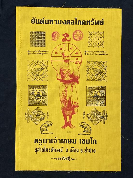 ผ้ายันต์มหามงคลโภคทรัพย์ หลวงพ่อเกษม เขมโก สุสานไตรลักษณ์ อ.เมือง จ.ลำปาง มีหมายเลขประจำผืน 828 สวยๆ |