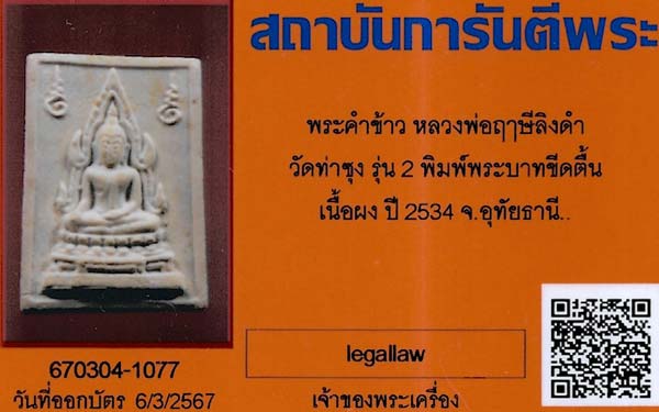 พระคำข้าว หลวงพ่อฤาษีลิงดำ วัดท่าซุง อุทัยธานี สวยกริ๊บ+บัตรรับรองพระแท้*206 |