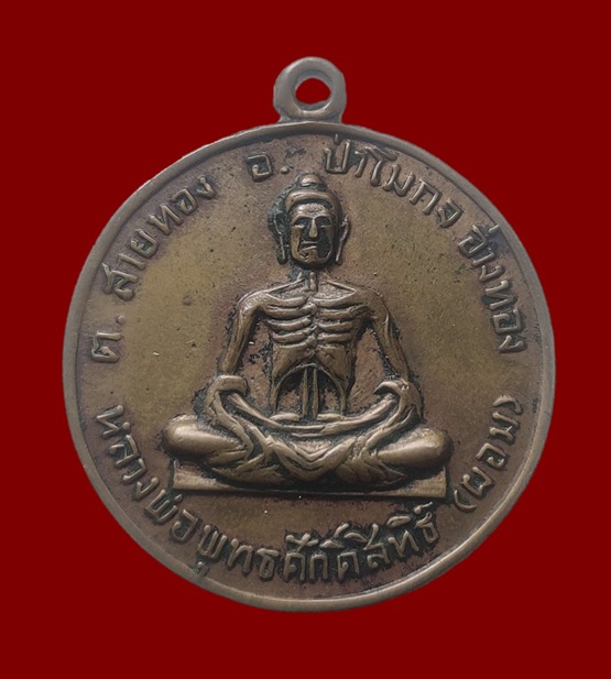 เหรียญรุ่นแรก หลวงพ่อพุทธศักดิ์สิทธิ์ (หลวงพ่อผอม) วัดพายทอง ที่ระลึกในงานสร้างศาลา เนื้อทองแดง ปี2516 จ.อ่างทอง |