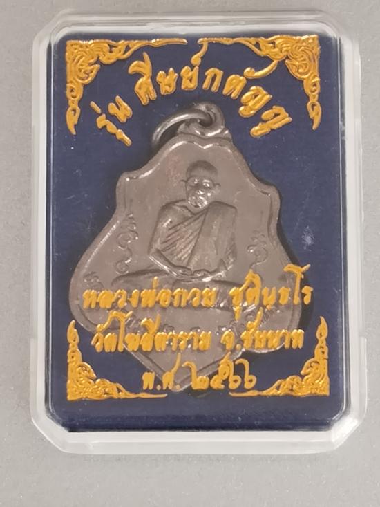 เหรียญโล่ห์ หลังยันต์ เนื้อทองแดงรมดำ รุ่นศิษย์กตัญญู ปี 2566 หลวงพ่อกวย วัดโฆสิตาราม ชัยนาท |