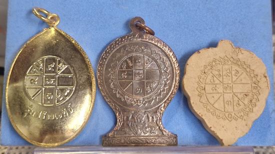 ล็อกเก็ต ปี 48 พร้อมเลี่ยมทองไมครอน ใบโพธิ์ใหญ่ เนื้อดินเผา หลังยันต์ดวง ปี 48 เหรียญตาชั่งใหญ่ เนื้อนวะ ปี 30 มาพร้อมกัน 3 องค์ ที่พี่ท่านใดชอบเชิญครับ |