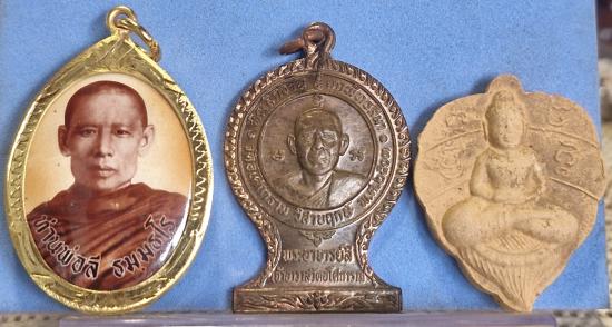 ล็อกเก็ต ใบโพธิ์ใหญ่ เหรียญตราชั่งใหญ่ หลวงพ่อลีวัดอโศการาม มาพร้อมกัน 3 องค์ |