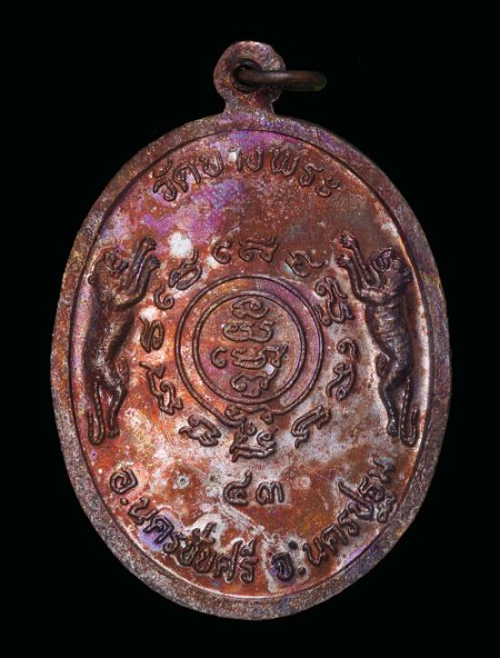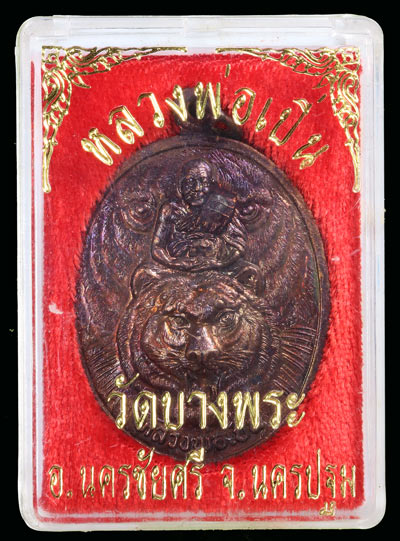 เหรียญเงาเสือ หลวงพ่อเปิ่น วัดบางพระ จ.นครปฐม ปี2543 - ผิวน้ำมันก๊าด - กล่องเดิม