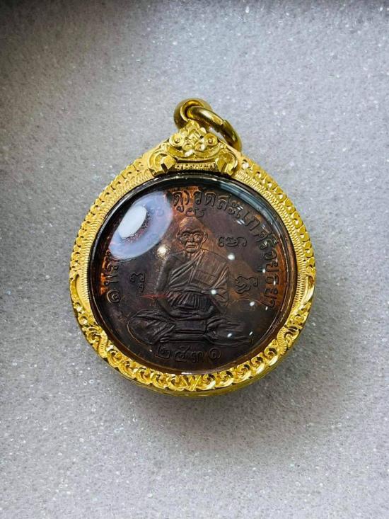 เหรียญเศรษฐี หลวงปู่ดู่ ทองแดง เลี่ยมทองหนา % สูง