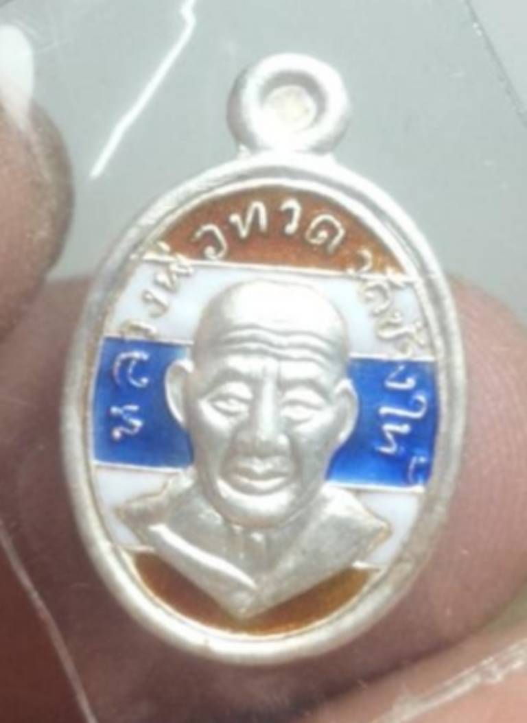 เหรียญเม็ดแตงหลวงปู่ทวดเนื้อเงินลงยาลายธงชาติ รุ่น 100 ปีอาจารย์ทิม