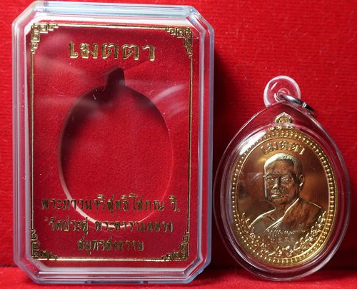 เคาะเดียว เหรียญเมตตา ที่ระลึกเลื่อนสมณศักดิ์ พระมหาสุรศักดิ์ วัดประดู่ฯ สมุทรสงคราม กะไหล่ทอง สวยเดิม พร้อมเลี่ยม |