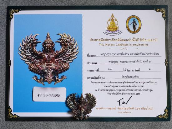 พญาครุฑรวยหมื่นล้าน หลวงพ่อพัฒน์ วัดห้วยด้วน รุ่นแรก เนื้อทองแดงผิวรุ้ง สภาพสวยพร้อมติดรางวัลงานใหญ่สมาคม |
