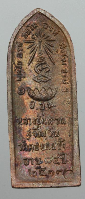 เคาะเดียวแดง หลวงปู่แหวน พิมพ์ยืน หลังรางปืน เนื้อทอง ปี 2517 |