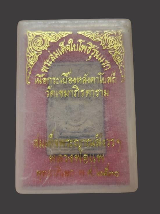 A495.พระสมเด็จใบโพธิ์รุ่นเเรก เนื้อกระเบื้อง สมเด็จพระญาณสังวรฯ หลวงพ่อแพ วัดเขมาภิรตาราม กล่องเดิม |
