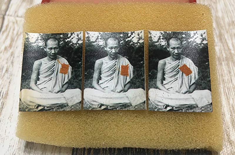 (ชุดที่1) 3ใบ รูปถ่าย ขาว-ดำ ติดจีวร หลวงพ่อเกษม เขมโก กระดาษหนังไก่ ปี 2518 |