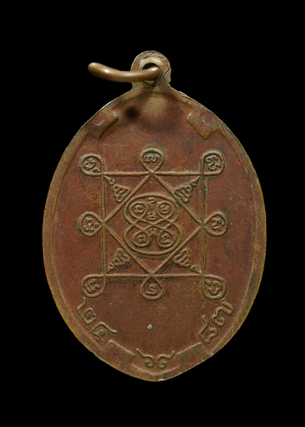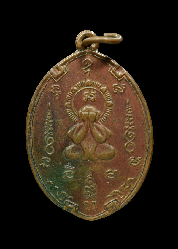 เหรียญพระภควัมปติ(ปิดตา) หลวงพ่อน้อย คนฺฺธโชโต วัดศรีษะทอง จ.นครปฐม ปี 2487 รุ่นแรก เนื้อทองแดง อดีตพระเกจิอาจารย์ผู้แก่กล้าในด้านพุทธาคมแห่งเมืององค์พระปฐมเจดีย์ ต้นตำหรับกะลาแกะรูปราหูอมจันทร์+วัวธนูเนื้อครั่งพุทรา |