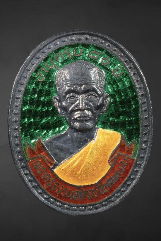 เคาะเดียว+ เหรียญ "เงินลงยา" หลวงพ่อผล วัดดักคะนน ปี38 |