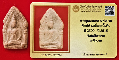 (เคาะแรกแดง)หลวงพ่อกวย พระขุนแผนพิมพ์ห้าเหลี่ยม ยุคต้น เนื้อดิน ปี 2500 - ปี 2515 วัดโฆสิตาราม