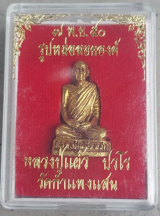 รูปหล่อลอยองค์หลวงปู่แผ้ว ปวโร วัดกำแพงแสน จ.นครปฐม ปี2550 พร้อมกล่องเดิม |