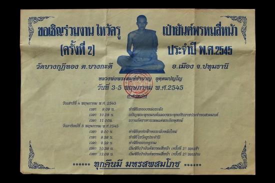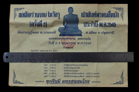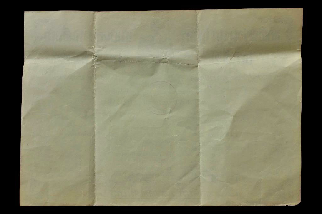 *** เคาะเดียวแดง ทุกรายการ *** กระดาษใบปลิวเป่ายันต์พรหม ครั้งที่ 2 หลวงพ่อชำนาญ วัดบางกุฎีทอง ปทุมธานี มีรอยพับ สภาพตามรูป