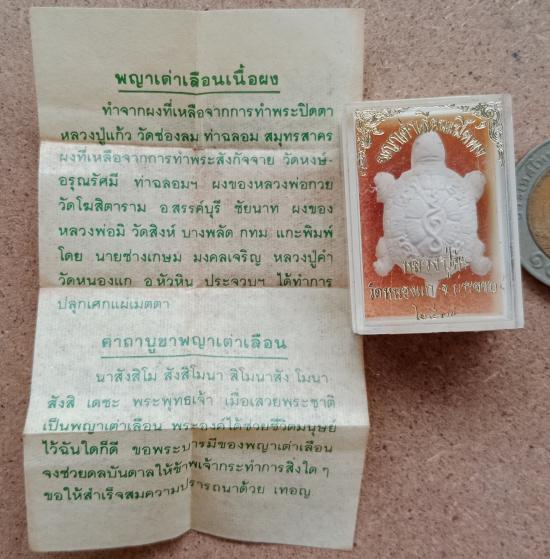 พญาเต่าเรือนเนื้อผงรุ่นแรก ปี35 หลวงปู่คำ วัดหนองแก จ.ประจวบคีรีขันธ์ แกะพิมพ์โดย นายช่างเกษม มงคลเจริญ รุ่นนี้สุดยอดมากผสมผง หลวงพ่อกวย หลวงปู่แก้ว พุทธคุณสุดยอดเสกโดยพระอรหันต์ห้าแผ่นดิน ใบฝอยเดิม+กล่องเดิม ตามรูป