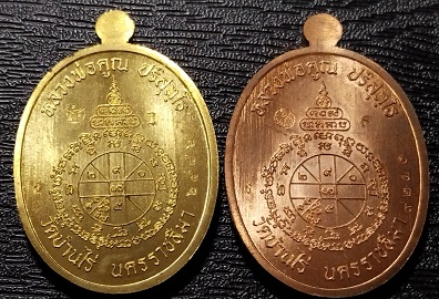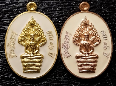 เหรียญนาคปรก หลวงพ่อคณ ร่น มหาลาภ ๙๑ เนื้อทองแดงลงยาสีขาว หมายเลข9250 เนื้อทองระฆังลงยาสีขาว หมายเลข 6446 เคาะเดียว 2 เหรียญ |